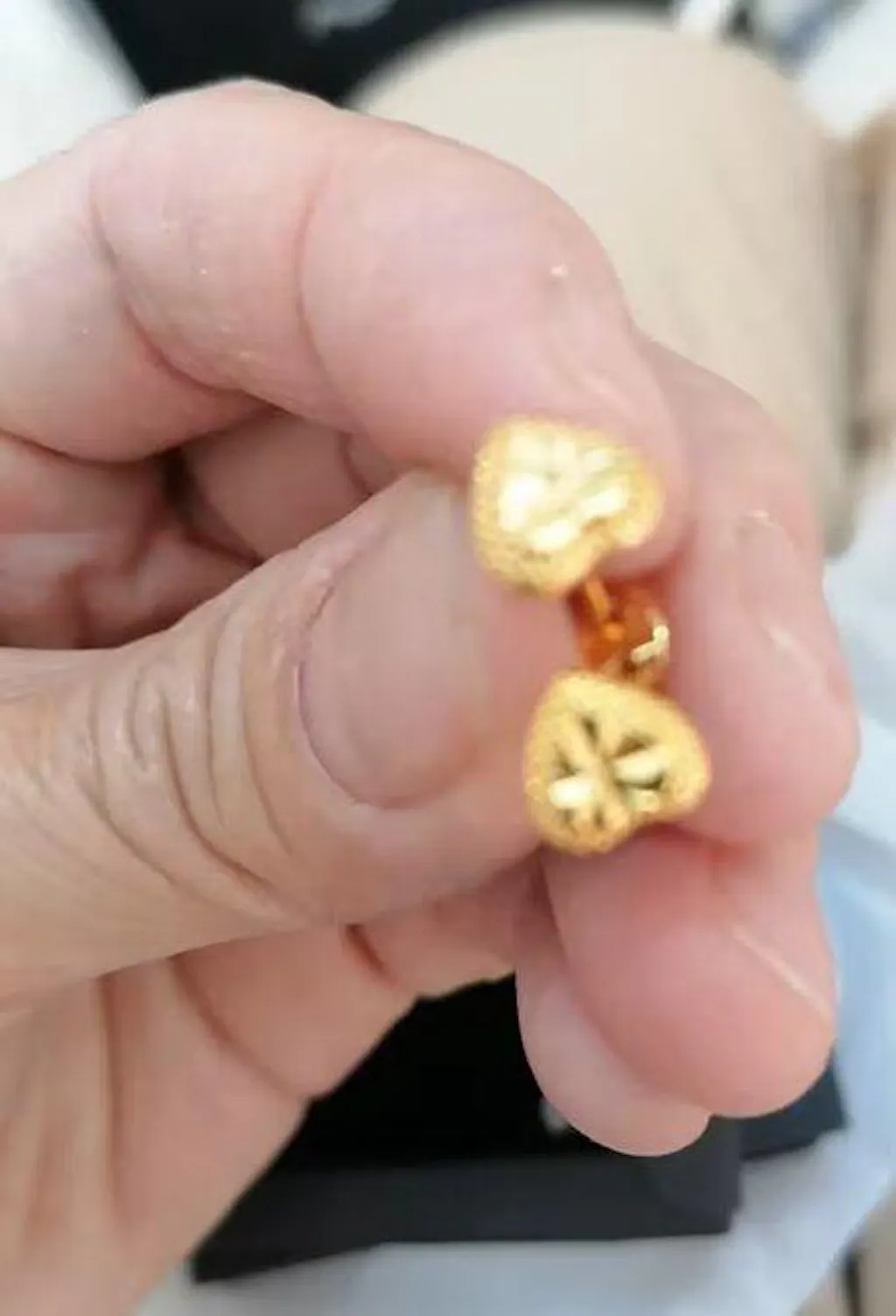 Gold heart-shaped earrings on a white background